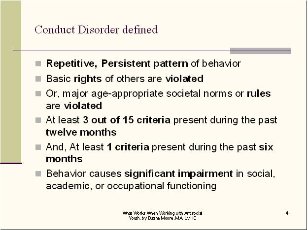 Diagnosis and Treatment of Serious Conduct Problems