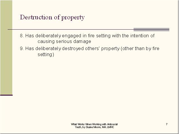 If the conduct disordered youth is involved in fire starting, what factors might you consider in your diagnosis and looking at the bigger picture? To select and enter your answer go to Test.