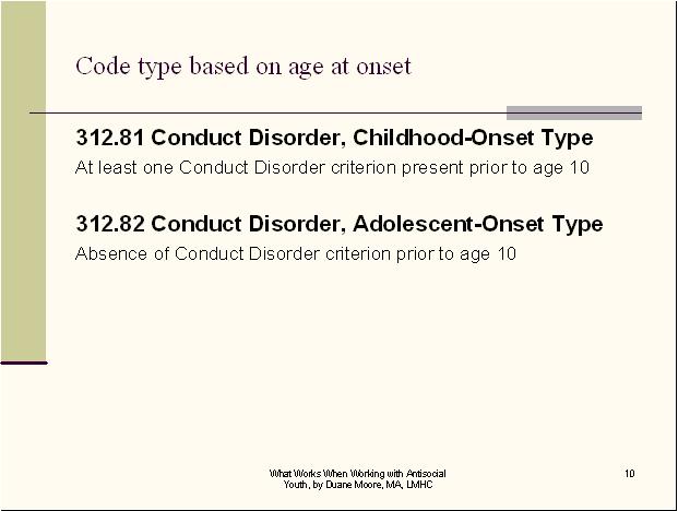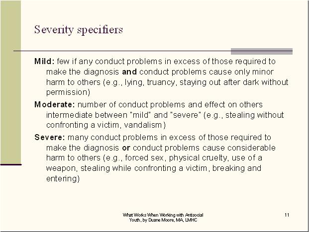 to Moderate” Specifiers for Conduct Disorder? To select and enter your answer