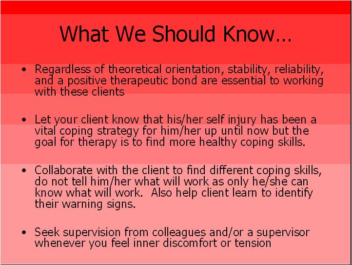 QUESTION 13 To help a client understand that it is important to develop healthy coping skills, how can the therapist address the client's self injury?