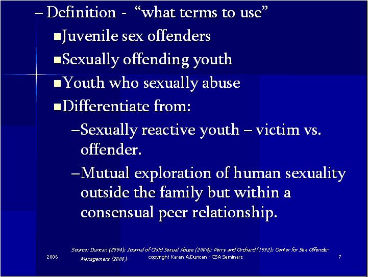 Caldwell, M. F. (2016). Quantifying the decline in juvenile sexual recidivism rates.Psychology, Public Policy, and Law, 22(4), 414–426.