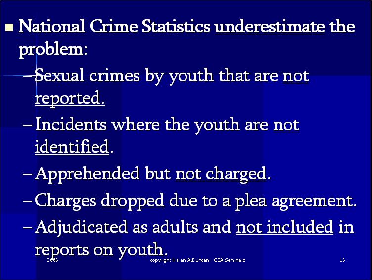 Caldwell, M. F. (2016). Quantifying the decline in juvenile sexual recidivism rates.Psychology, Public Policy, and Law, 22(4), 414–426.