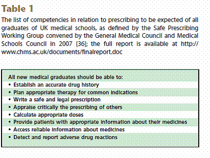 For the first time it was possible to achieve consensus on a list of prescribing competencies that should be expected of all graduates of medical schools and against which undergraduate education can be judged [36] (Table 1). Although this is an advance, it has not addressed the central question of how these outcomes can be achieved.
